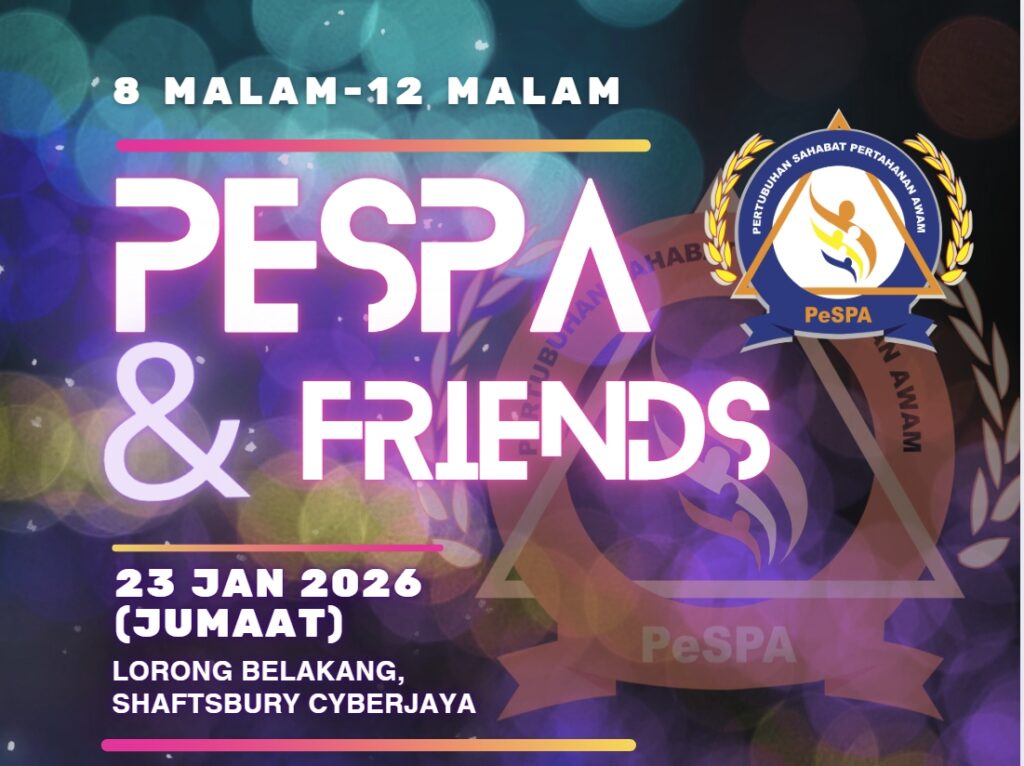 Pertubuhan Sahabat Pertahanan Awam (PeSPA) akan bersama rakan-rakan strategik bagi menganjurkan Program “PeSPA & Friends” yang akan menampilkan aktiviti-aktiviti menarik seperti Band dan Nyanyian, Pameran, Pemeriksaan Kesihatan, Booth Jualan Artis, E-Sukan dan lain-lain. Cabutan Bertuah juga akan diadakan untuk Ahli PeSPA yang berdaftar.